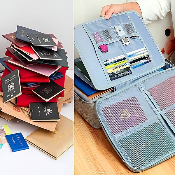 Utilizzate la borsa per conservare passaporti, itinerari di viaggio e conferme di hotel per viaggiare senza problemi.