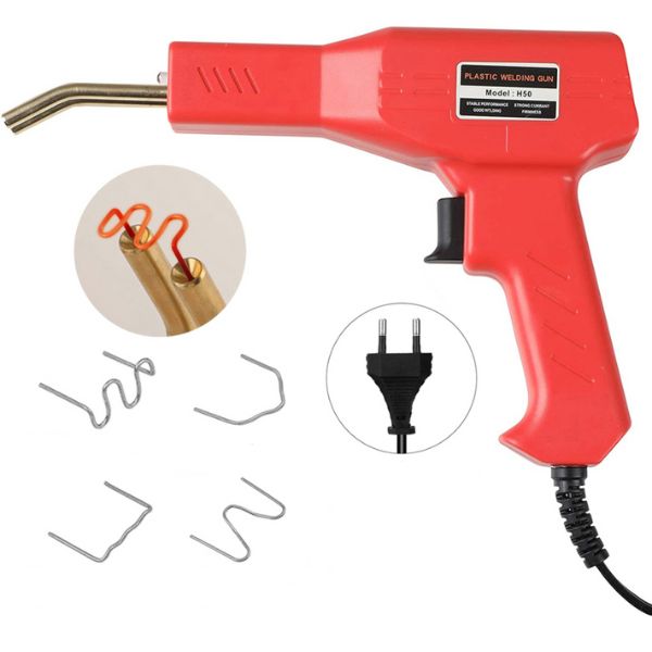 - La confezione comprende un dispositivo di saldatura, un set di pinze, un coltello e 200 graffette di diverse dimensioni.
