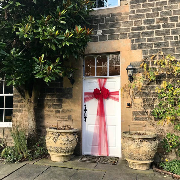 Vestite la vostra porta con le nostre decorazioni di lusso a forma di fiocco. Con un nastro lungo 750 cm, potrete dare forma e aggiungere un bellissimo tocco festivo alla vostra porta d’ingresso. Che si tratti di Natale, matrimoni o baby shower, il RUBYBOW esalta la festa.