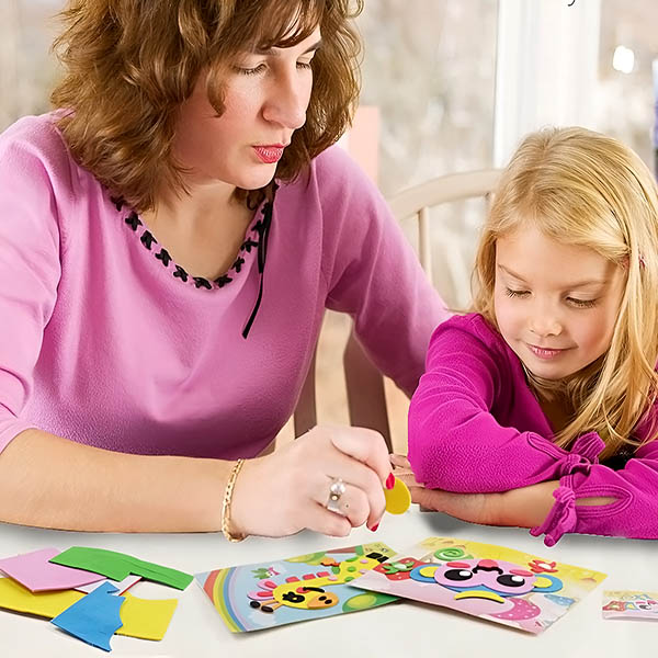 Gli adesivi fai da te sono molto tridimensionali, con il retro autoadesivo. Una volta terminati, i bambini possono attaccarli alla parete per decorare la casa o conservarli come un bel ricordo.